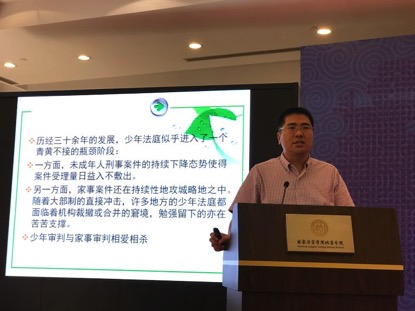 在发言中,张鸿巍教授从过去25年间全国法院系统未成年人案件受理量纵向变化以及对美国少年法庭案件受理量横向比较出发,结合中美家事审判发展历程,主张在当下少年法庭可持续发展紧要关头重新审视少年法庭性质、地位、作用及受案范围实有必要。在此少年法庭发展进退非常时期,他认为认真总结基层一线经验确有必要;与此同时也应积极而审慎地借鉴域外经验,为我所用。尽管少年法庭在发展过程中亦遭遇多次非议甚至非难,但美国少年法庭能够经过百余年发展仍屹立不倒,其正反经验或可为时下中国内地少年法庭可持续发展提供一些他山之石的反思。